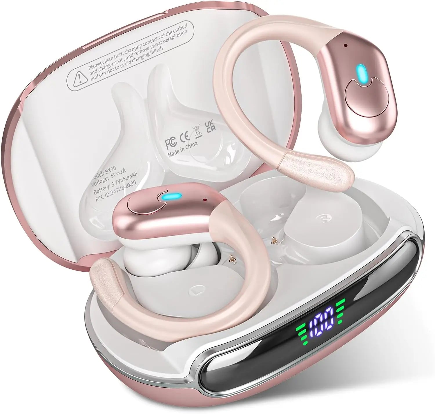 BX30 Bluetooth Headphones Wireless Earbuds Bluetooth 5.3 Earphones with LED Display Noise Cancelling Waterproof Over Ear Buds
