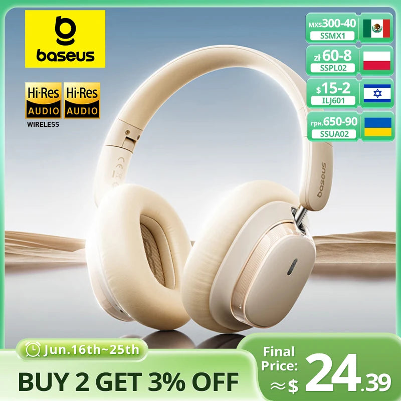 Regular price $79.84 USDSale price $79.84 USD Regular priceUnit price per$79.84 USDSale Sold outSPECIFICATIONSActive Noise-Cancellation: YesBattery Capacity[mAh]: 800mahBattery life up to[hours]: 120hoursBluetooth Version: otherBluetooth version: 5.4Brand Name: BASEUSCategory: Earphones & HeadphonesCertification: CE,FCC,RoHS,KCCharge time: 1.5hoursCharging Method: cableCodecs: AAC,sbcCommunication: Wireless+WiredCompatible: Wired...