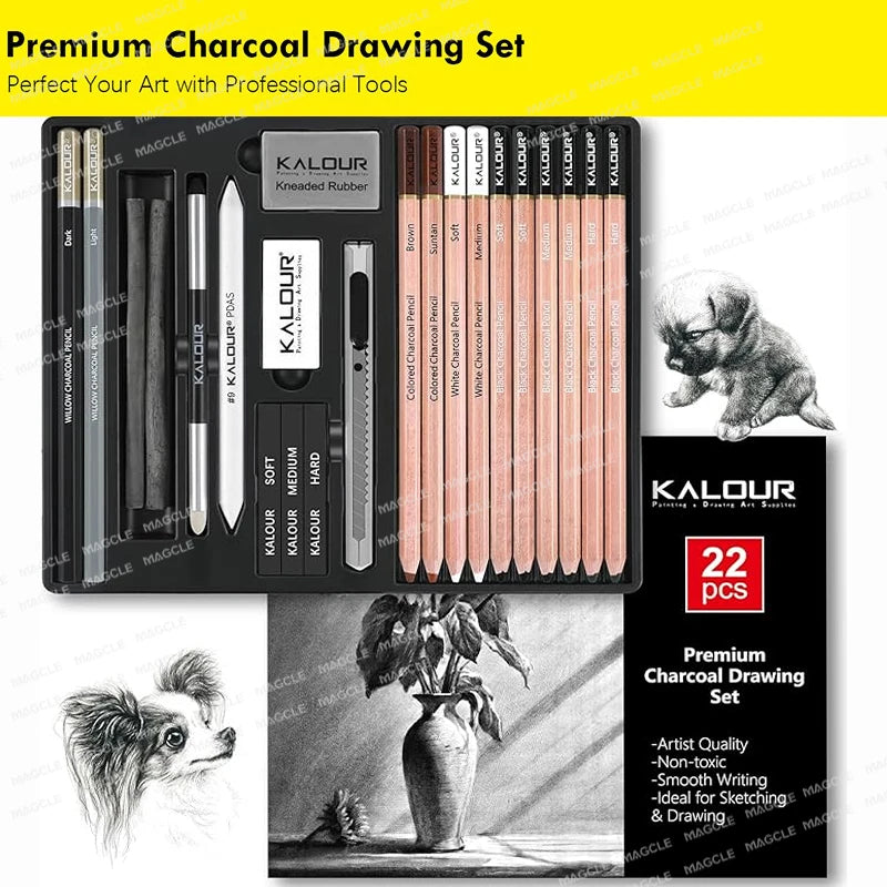 Regular price From $29.90 USDSale price From $29.90 USD Regular priceUnit price per$29.90 USDSale Sold outSPECIFICATIONS22pcs Complete Charcoal Drawing Set: 6 black charcoal pencils (soft, medium, hard), 2 white charcoal pencils, 2 colored charcoal pencils, 2 willow charcoal pencils, 3 charcoal...