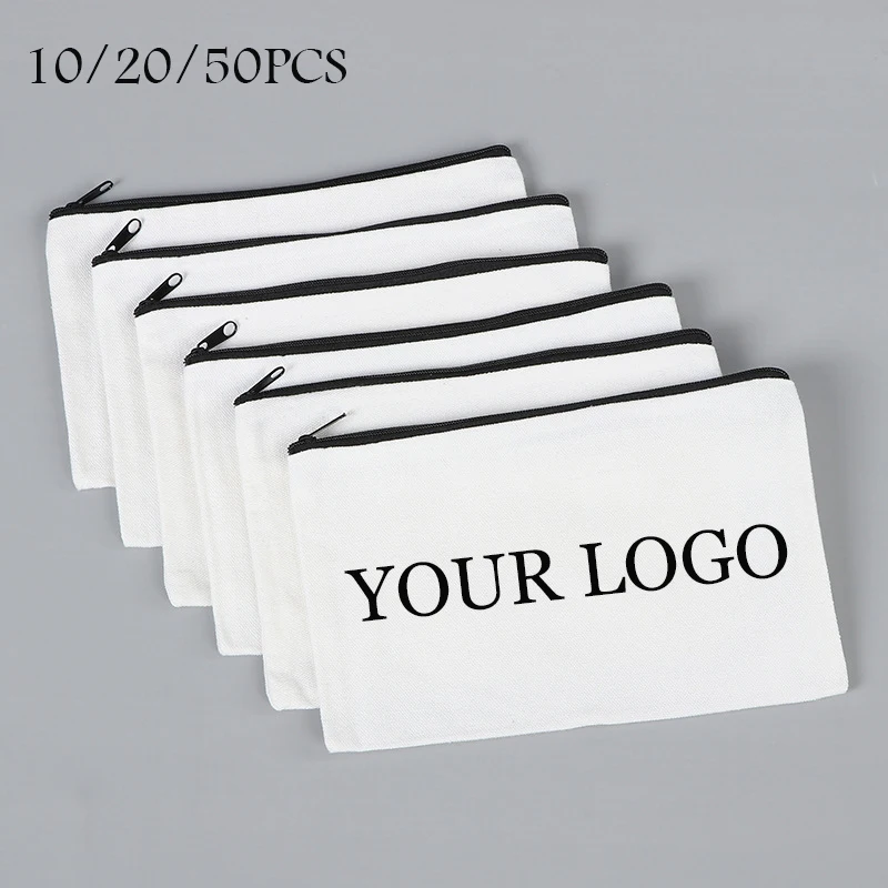 10/20/50pcs LOGO Customized Canvas Zipper Bags Multifunctional Blank DIY Craft Pouches Pencil Bags Personalized Makeup Pockets
