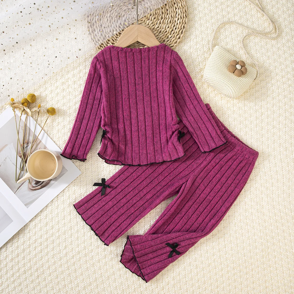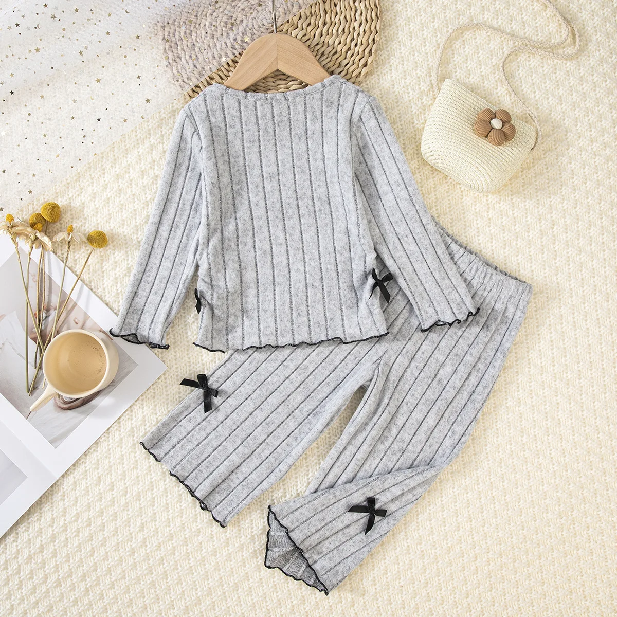 2-6Y Kids Girls Child Set New Arrival Toddler Girl Autumn Winter Set Round Neck Long Sleeve Top and Pants with Bow Decor