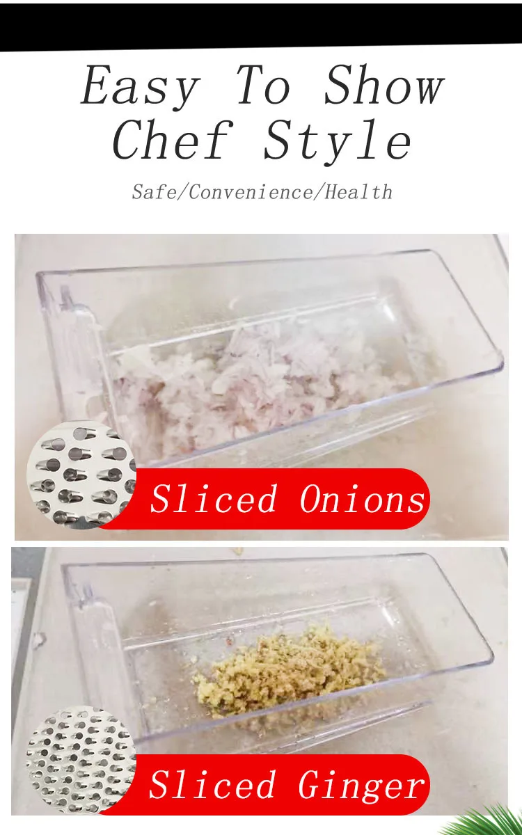 2.   【2 Sides Design】Designed with 2 sides, our Vegetable Shredder can be used for fine and coarse grating to meet the daily needs of your kitchen, ideal for producing different sizes of cheese, vegetables and more.