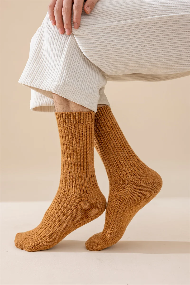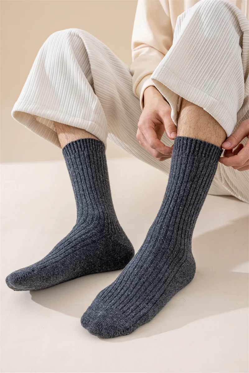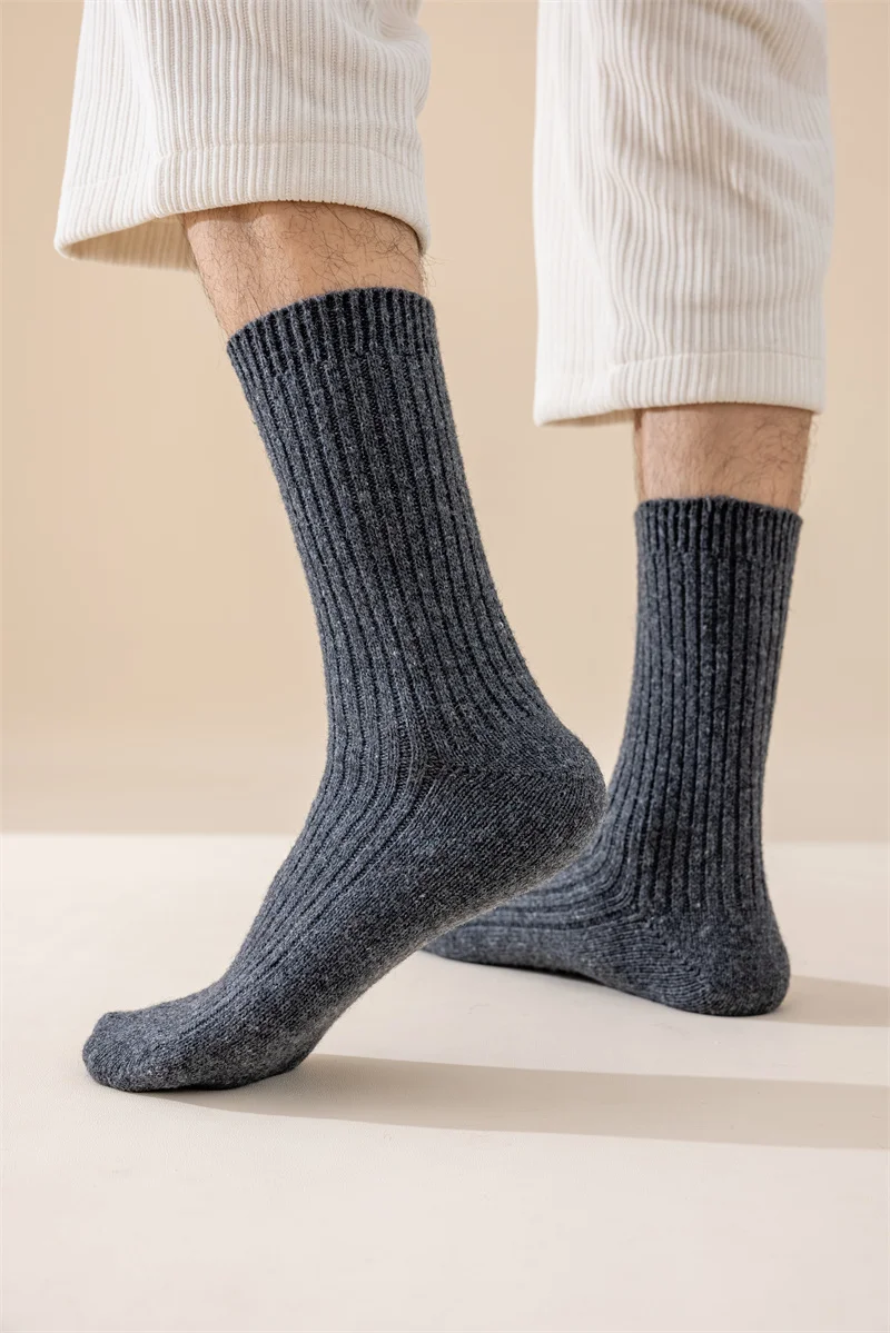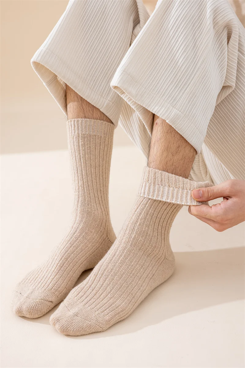 3 Pair Winter Thick Warm Men's Wool Socks High Quality Harajuku Retro Merino Wool Casual Socks Large Size Long Socks