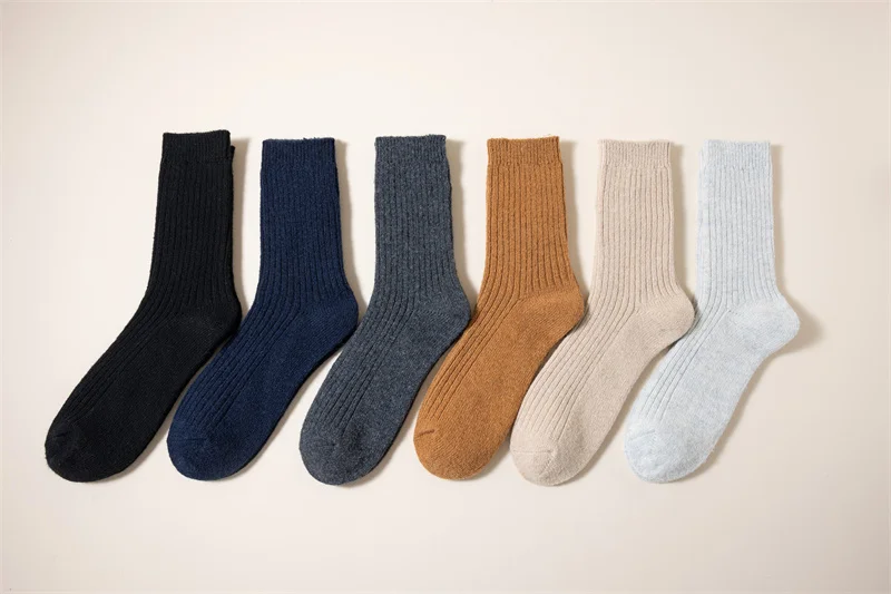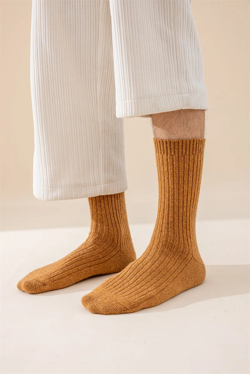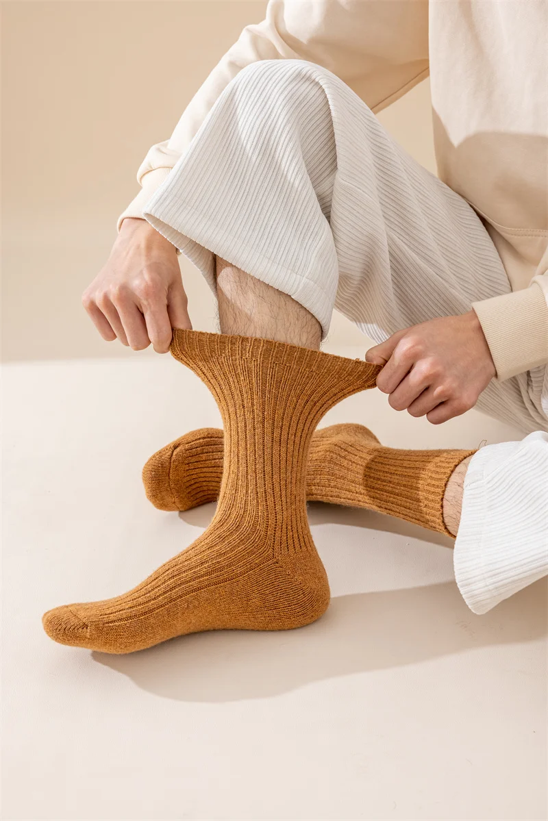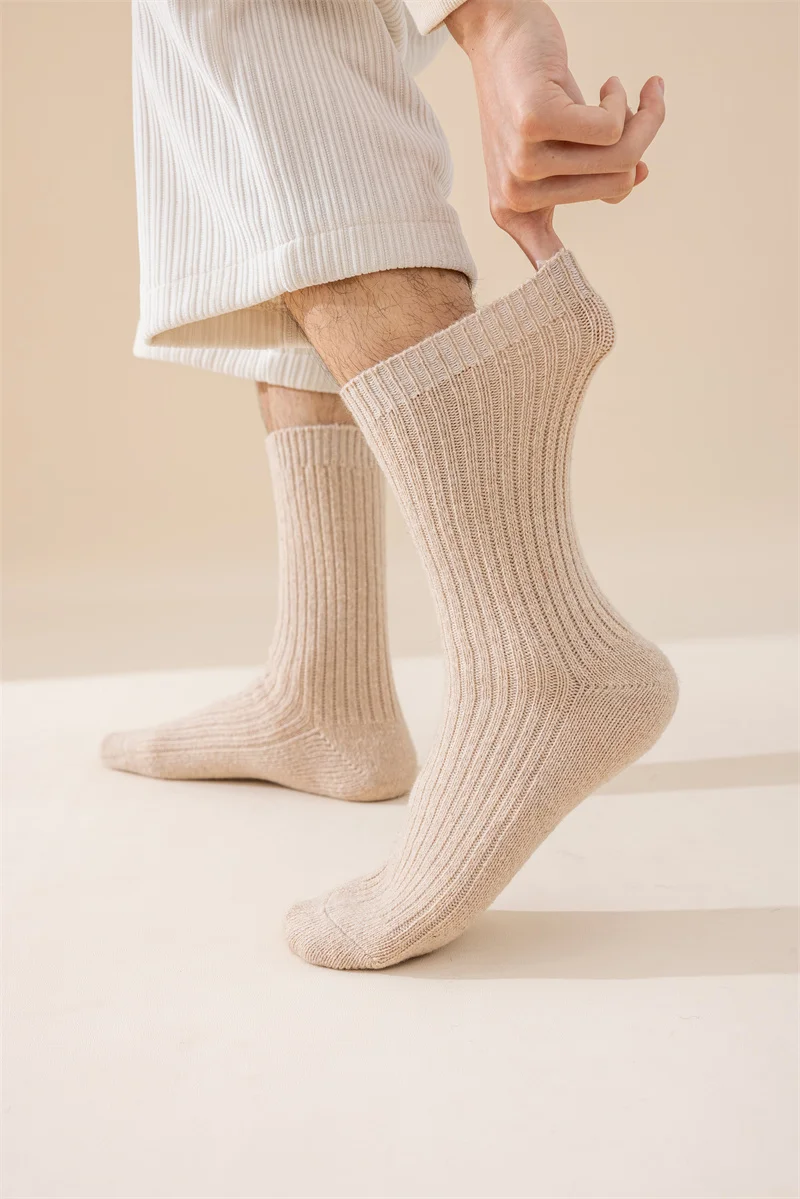 3 Pair Winter Thick Warm Men's Wool Socks High Quality Harajuku Retro Merino Wool Casual Socks Large Size Long Socks