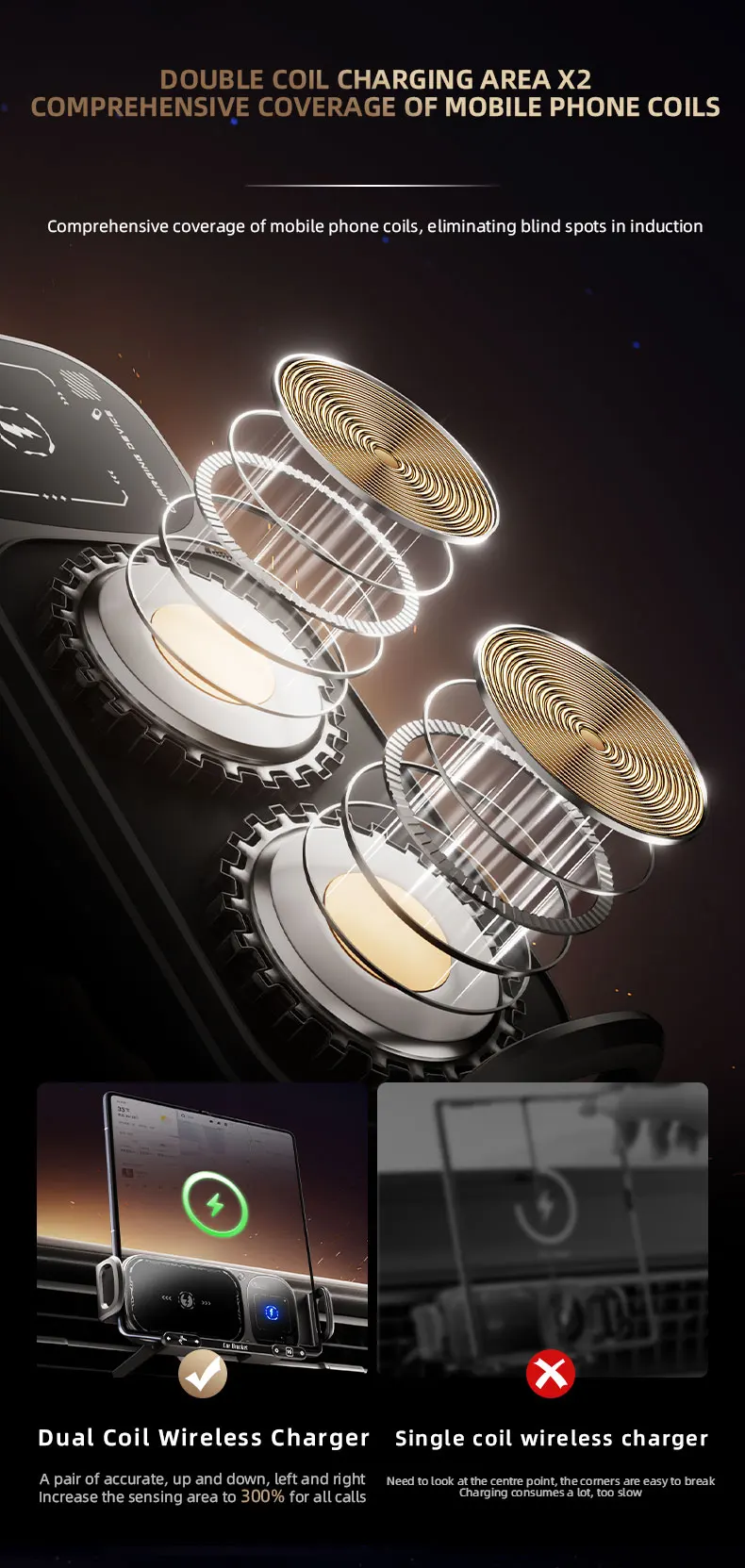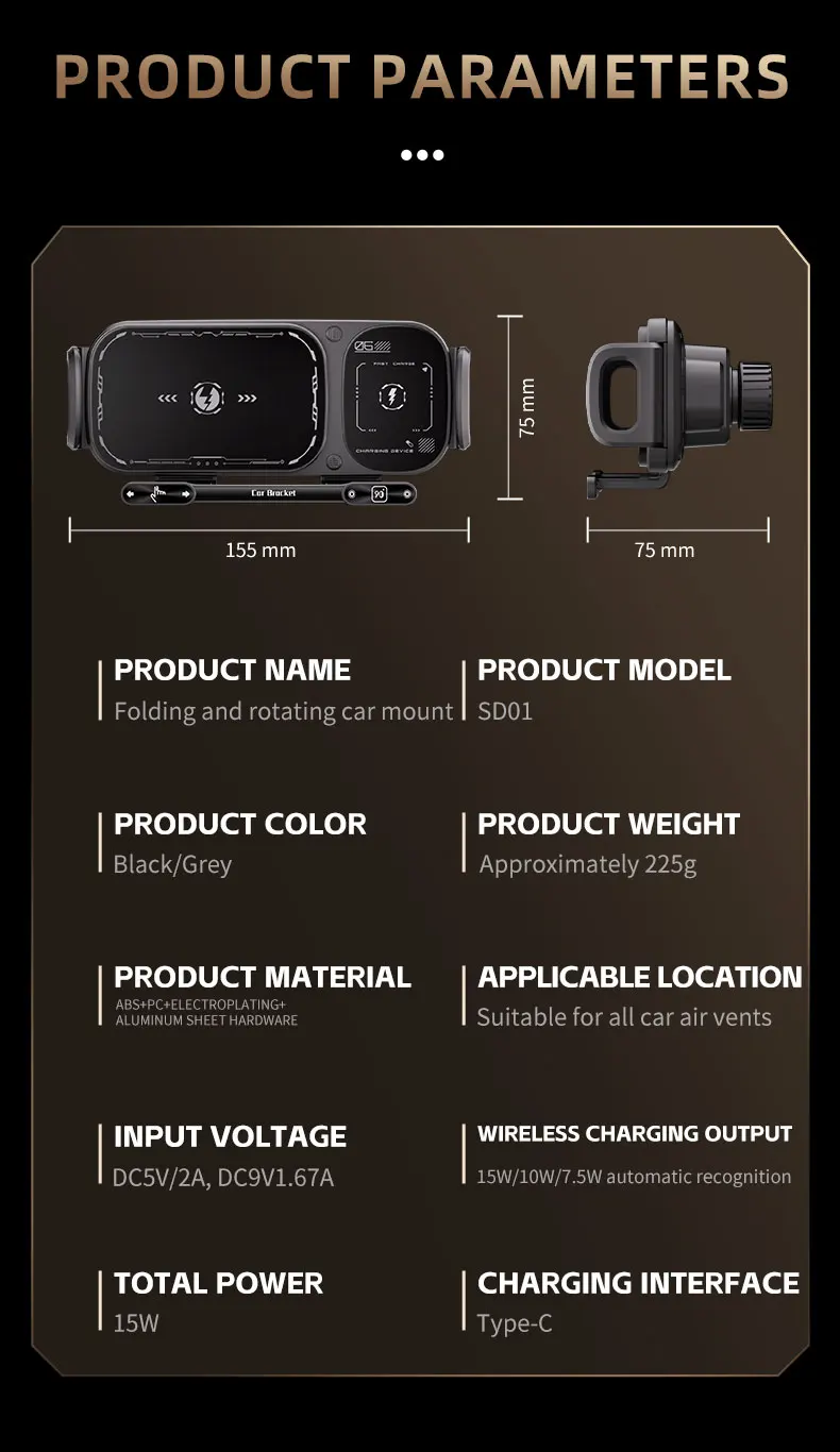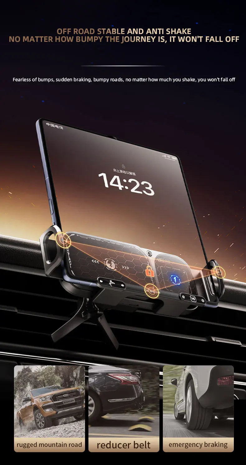 Dual Coil Foldable Phone Holder Car Wireless Charger Universal Car Phone Mount Fast Charging For Samsung iPhone Xiaomi Z Fold