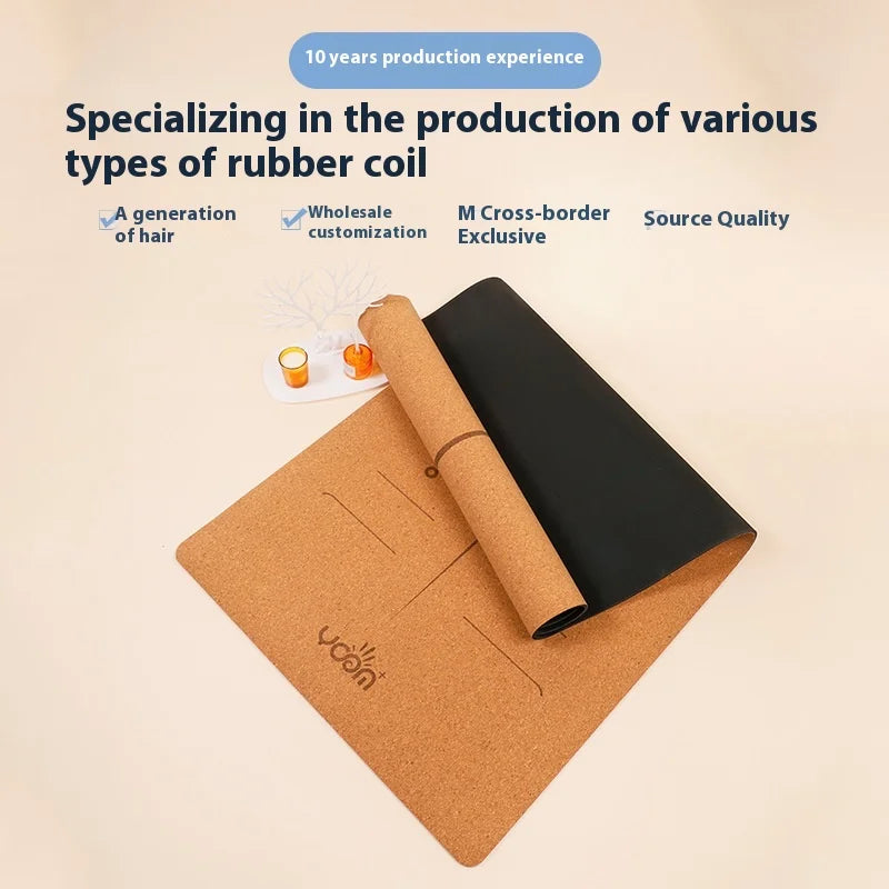 ‌Natural Rubber & Cork Yoga Mat - 68cm Extra-Wide 5mm Thick Gymnastic Mat with Laser-Engraved Alignment Lines & Logo Printing‌ ‌