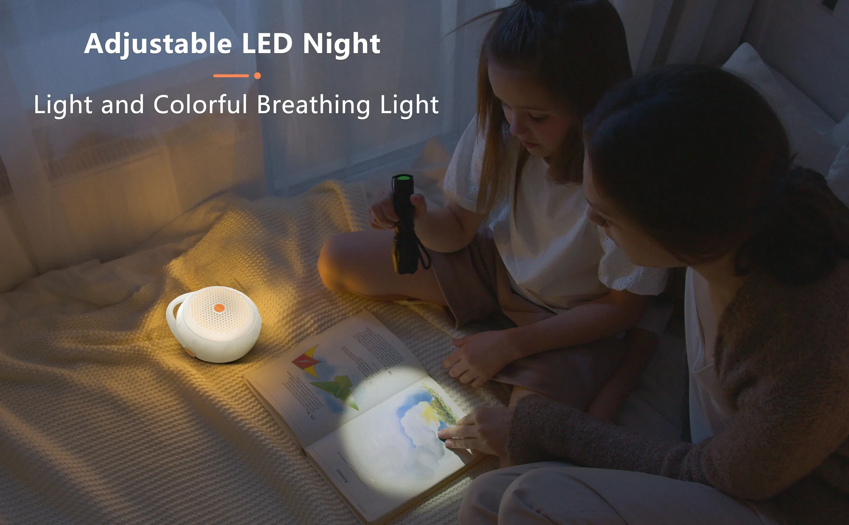 Portable Bluetooth White Noise Machine with 12 Soothing Relaxing Sounds & Silicone Sleep Timer Night Light for Baby & Adults